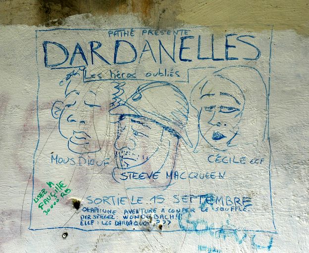 Vue du fort détaché du Questel : face de Penfeld, magasin d'artillerie voûté, grafitti contemporainsImmatriculation