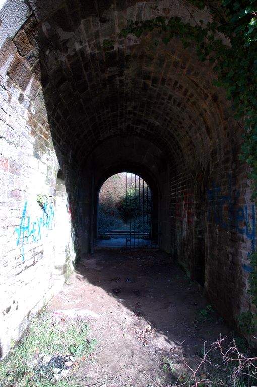 Vue du réduit de batterie de côte dit redoute intermédiaire des Blancs Sablons : passage d'entréeImmatriculation