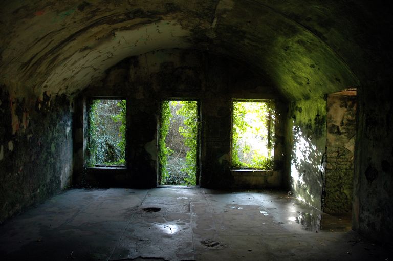 Vue du réduit de batterie de côte dit redoute intermédiaire des Blancs Sablons : casemate servant au logement des soldats (en temps de paix : 6 soldats et un sous officier séparé par une cloison ; en temps de guerre : 8 soldats et un sous officier)Immatriculation