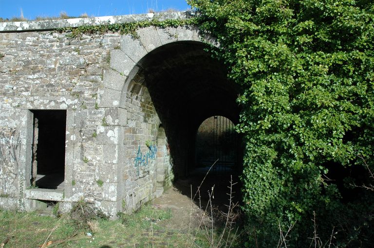 Vue du réduit de batterie de côte dit redoute intermédiaire des Blancs Sablons : place d'arme centrale, passage d'entréeImmatriculation
