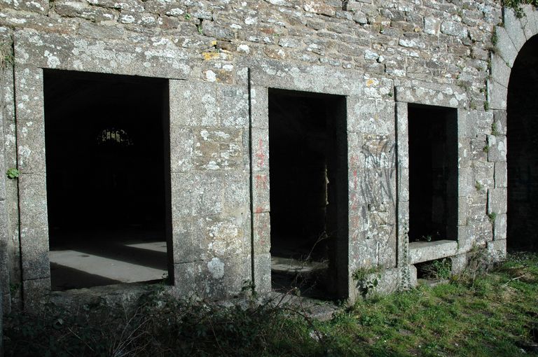 Vue du réduit de batterie de côte dit redoute intermédiaire des Blancs Sablons : baies et porte de la casemate servant au logement des soldatsImmatriculation
