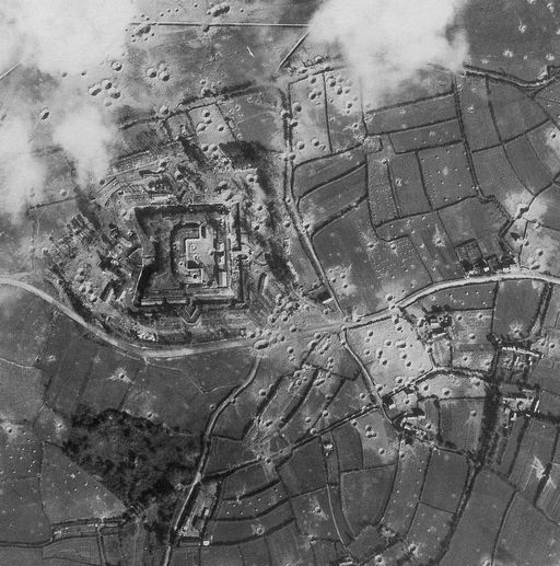 Vue aérienne verticale du fort Montbarrey et des fossés anti-chars situés à l'ouest de Brest, 1944Immatriculation