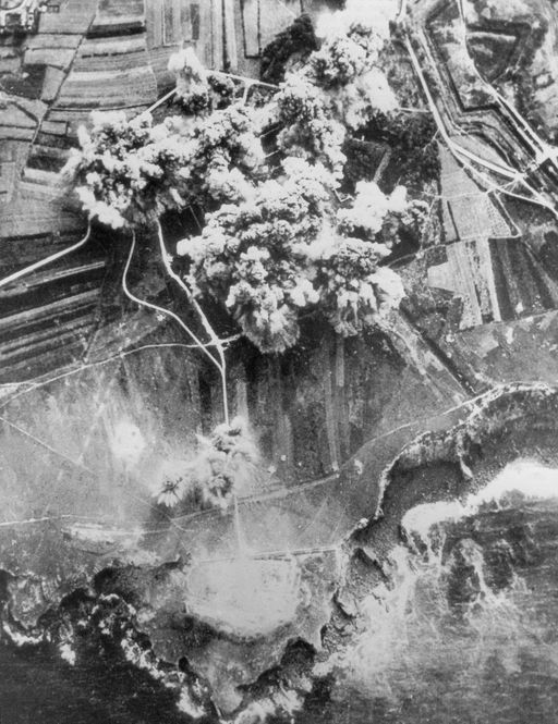 Vue aérienne verticale des bombardements du réduit de Quélern, 3 septembre 1944Immatriculation