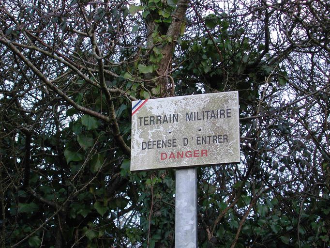 Vue de la batterie antiaérienne de Keroual : signalétique en place, TERRAIN MILITAIRE, DEFENSE D'ENTREE, DANGERImmatriculation