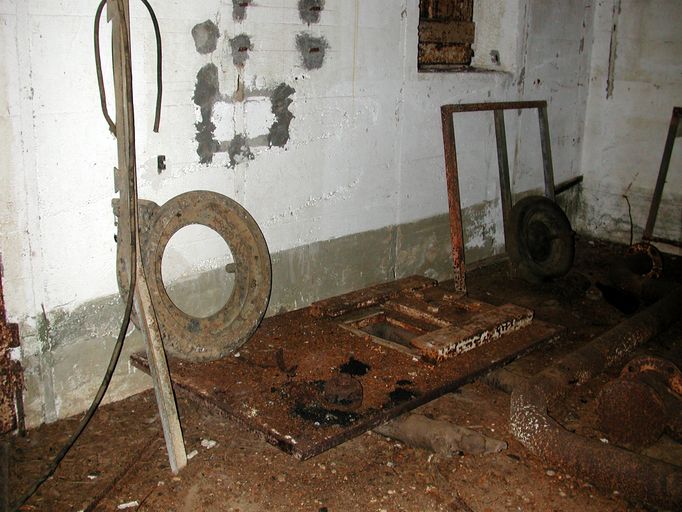 Vue de la chambre de troupe de gauche : créneau blindé gisant au sol (état en 2003)Immatriculation