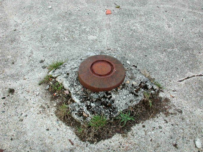 Vue de l'orifice de sortie du périscope du bunker avec son bouchon de protection encore en place (état en 2003)Immatriculation