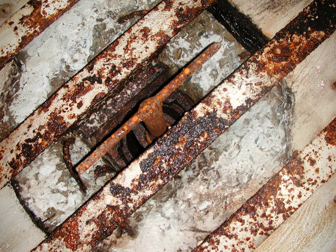 Vue de l'orifice d'entrée du périscope du bunker avec son bouchon de protection encore en place (état en 2003)Immatriculation