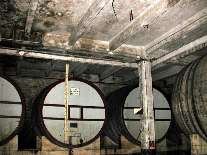 Vue de situation de l'abri passif souterrain de Saint-Martin : accès par la cave d'un bâtiment en démolition, barriques de stockage de vinImmatriculation
