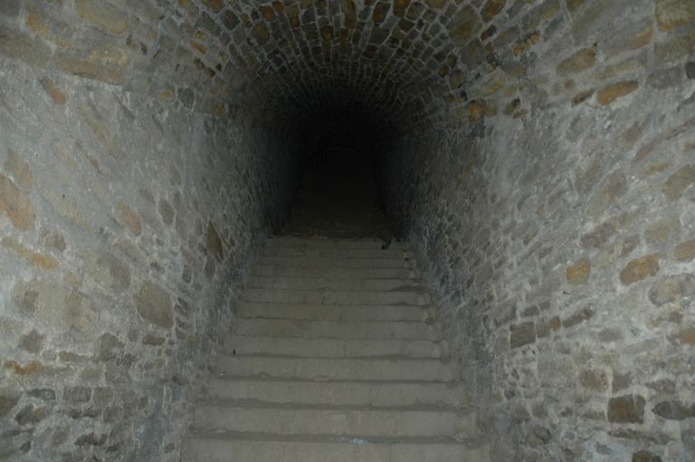 Vue de la galerie de communication située entre la porte de la Brasserie et le bastion du Menès : escaliersImmatriculation
