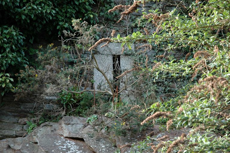 Vue des vestiges des fortifications d'agglomération de Brest au Moulin à poudre : mur défensif percé de créneaux de mousquetterie de la porte de la BrasserieImmatriculation