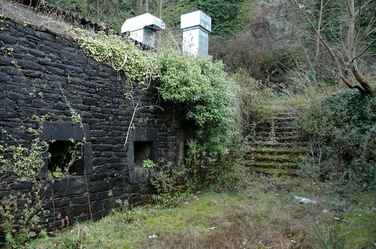Vue des vestiges des fortifications d'agglomération de Brest au Moulin à poudre : mur défensif percé de créneaux de mousquetterie de la porte de la BrasserieImmatriculation