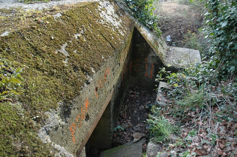 Vue de la casemate allemande pour canon de 47 mm antichars intégrée dans le mur défensif de la porte de la BrasserieImmatriculation