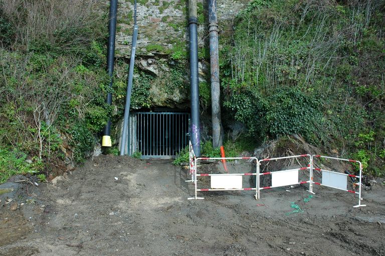 Vue des vestiges des fortifications d'agglomération de Brest : front bastionné du Cours Dajot. Entrée du tunnel allemand servant d'hôpital militaire aménagé sous la rampe construite durant le Second Empire pour le Port de Commerce de PorstreinImmatriculation