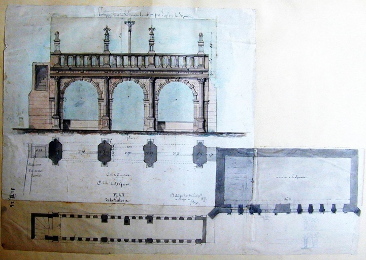 L'arc monumental et la chapelle des morts (dit ossuaire). Relevé par Joseph Bigot, 1877 (A.E.Quimper, 8 L )Immatriculation