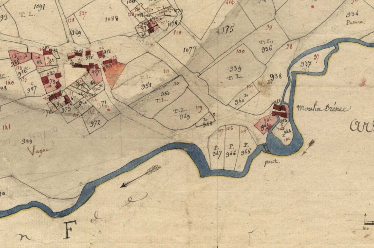Le moulin du Drennec. Extrait du cadastre de 1812, section E 3 (A.D. Finistère, 3 P 279)Immatriculation