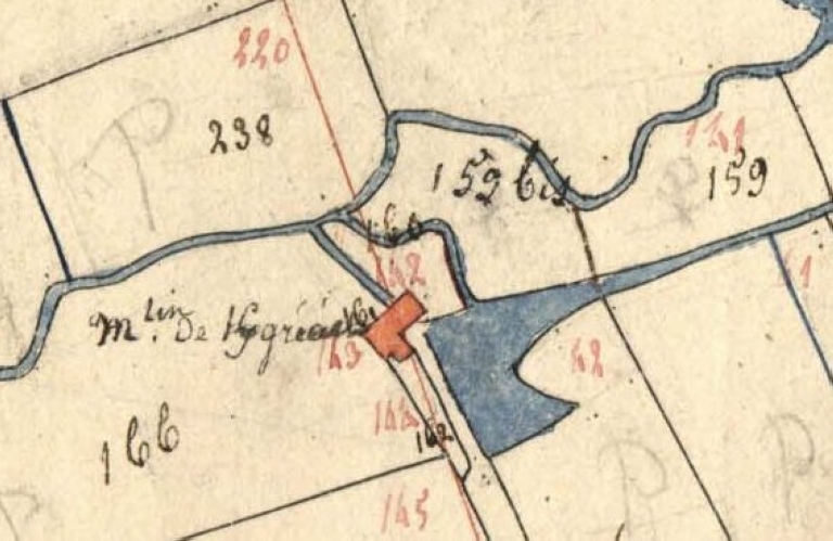 Le moulin dit de Kergréac'h. Extrait du cadastre de 1812, section H 1 (A.D. Finistère, 3 P 279)Immatriculation
