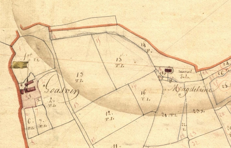 La chapelle de la Madeleine (disparue). Extrait du cadastre de 1812, section D1 (A.D. Finistère, 3 P 279)Immatriculation