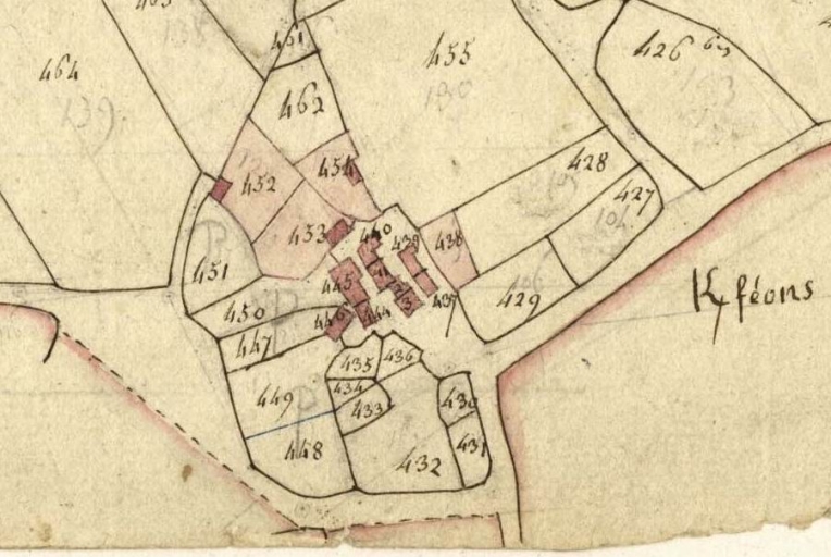 Partie nord du hameau. Extrait du cadastre de 1812, section E 2 (A.D. Finistère, 3 P 279)Immatriculation