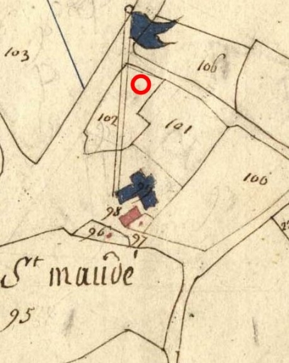 Emplacement actuel sur fond du cadastre de 1812 (A.D. Finistère, 3 P 279)Immatriculation