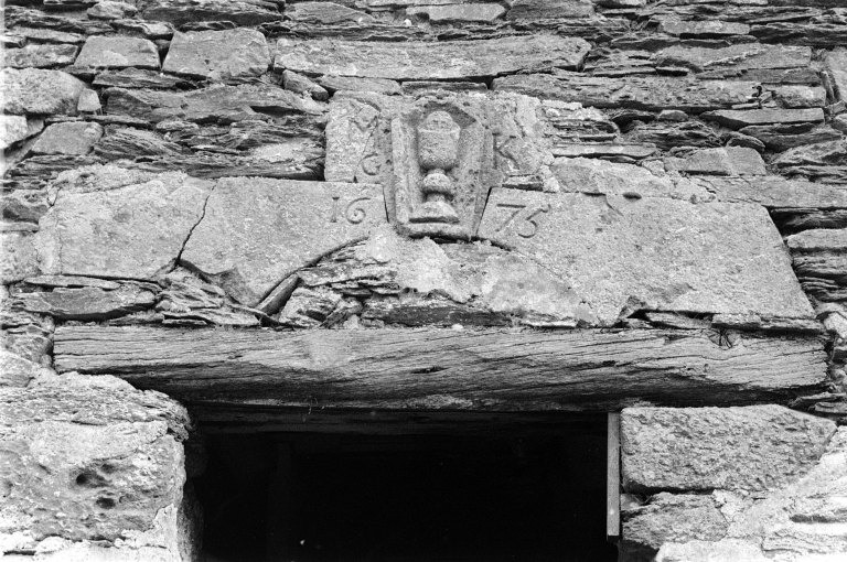 Elévation nord, partie est, linteau de la porte. Etat en 1970 (photo L. Pape)Immatriculation