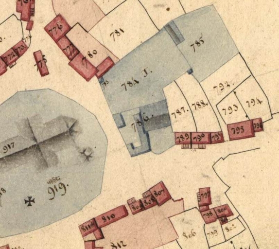 L'emprise de l'ancien presbytère construit en 1777. Extrait du cadastre de 1812, section B 3 (A.D. Finistère, 3 P 279)Immatriculation