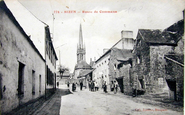 Route de Commana (aujourd'hui rue de l'Argoat), vue vers l'ouest. Carte postale ancienne (coll. part.)Immatriculation