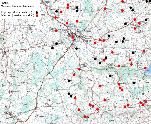 Les maisons, fermes et hameaux sur la commune de Sizun,