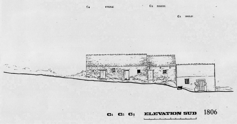 Coupe des bâtiments C1 C2 C3, d'après le relevé de Lablaude et GalletImmatriculation
