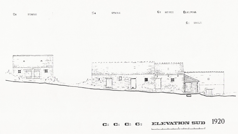 Coupe des bâtiments C5 C4 C3 C2, d'après le relevé de Lablaude et GalletImmatriculation