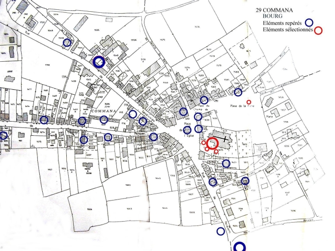 Localisation des éléments répertoriés (fond : cadastre de 2005)Immatriculation