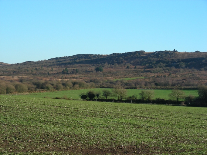 Champ cultivé et landes des Monts d'Arrée au second plan, à proximité de RoscoatImmatriculation