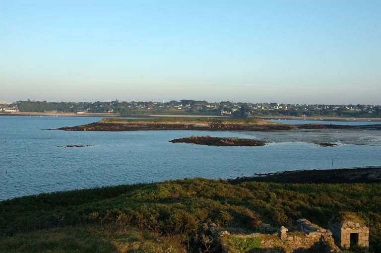 Vue d'Enez Vihan depuis la terrasse de la tour d'artillerie du fort CézonImmatriculation