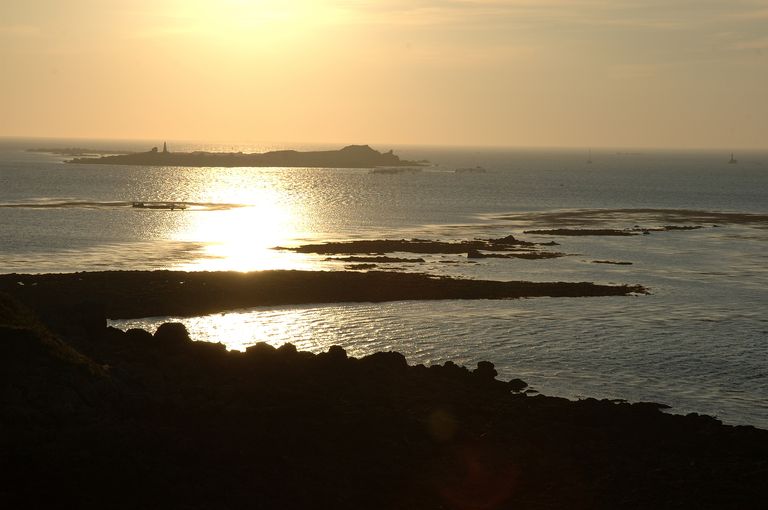 Vue de l'embouchure de l'Aber Wrac'h depuis la terrasse de la tour d'artillerie du fort CézonImmatriculation