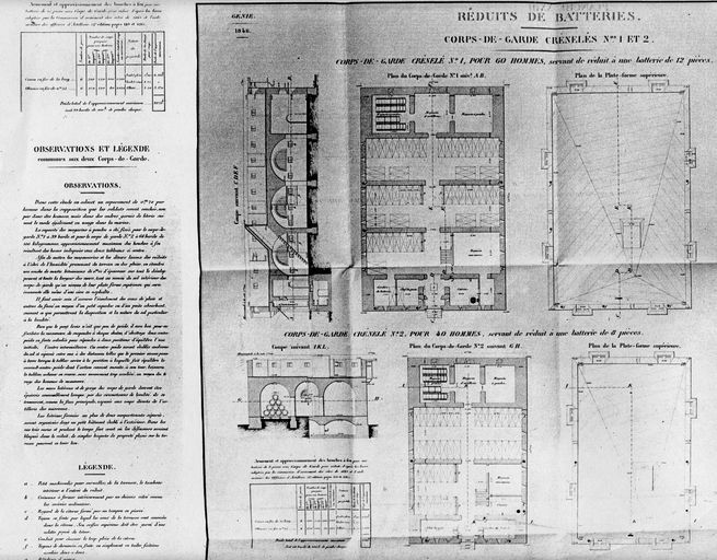 Plans et coupes des corps de garde crénélés n° 1 et 2Immatriculation