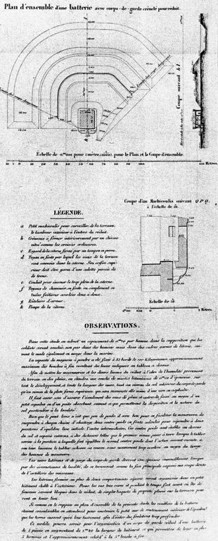 Légende des plans, coupes et élévations des corps de garde crénélé n° 3 (pour 20 hommes et une batterie de 4 pièces d'artillerie)Immatriculation
