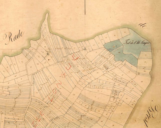 Plan de situation du fort de l'île Longue, extrait du cadastre ancien de la commune de Crozon, sans date, vers 1840, Archives Départementales du FinistèreImmatriculation