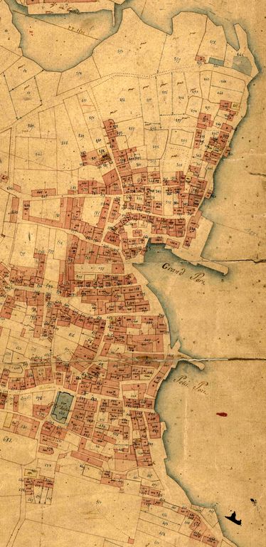 Plan de situation de l'ensemble fortifié de Rosmeur, sans date, vers 1840, cadastre ancien de la commune de Douarnenez (Archives Départementales, Finistère, 3P116_001)Immatriculation