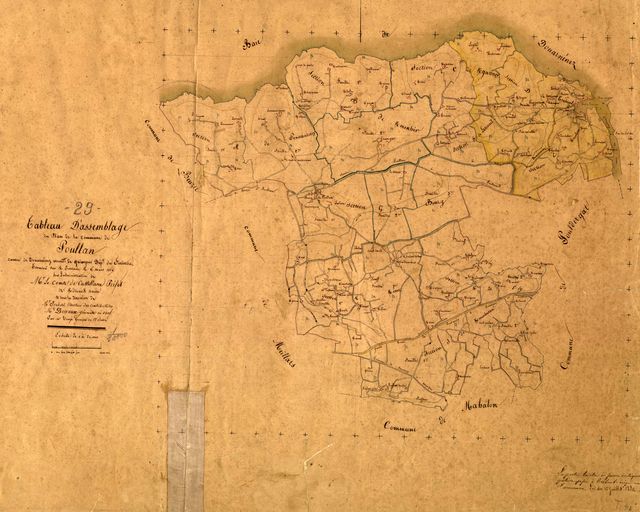 Tableau d'assemblage de la commune de Poullan (partie en jaune : devenue commune de Tréboul en 1880 puis Douarnenez) (Archives Départementales, Finistère, 3P286_001)Immatriculation