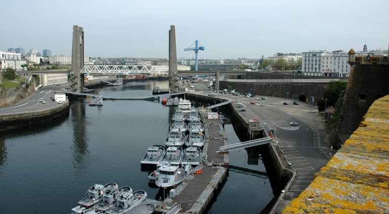 Vue générale du pont de Recouvrance permettant de franchir la Penfeld et l'Arsenal depuis le châteauImmatriculation