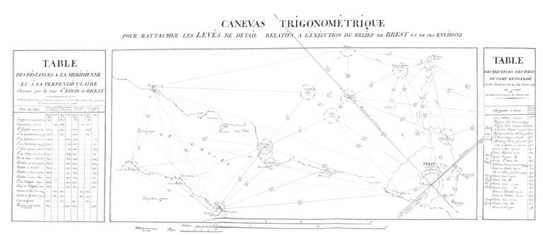 Plan-relief de Brest, 1807. Canevas trigonométrique pour rattacher les levés de détail relatifs à l'exécution du relief de Brest et de ses environsImmatriculation