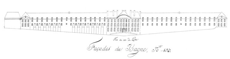 Elévations des établissements maritimes du port de Brest, année 1807. Façades du bagne, n° 130 (face du côté du port)Immatriculation