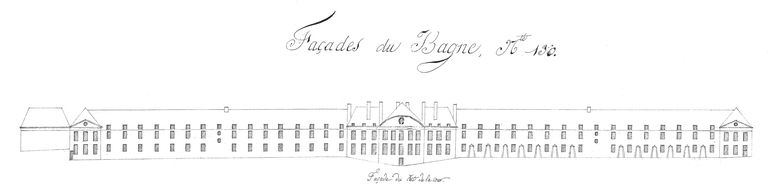 Elévations des établissements maritimes du port de Brest, année 1807. Façades du bagne, n° 130 (façade du côté de la cour)Immatriculation