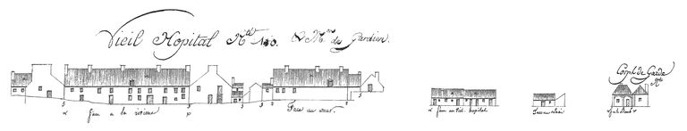 Suite des établissements maritimes, côté de Recouvrance, année 1807. Vieil hôpital et maison du gardien, n° 110 (face à la rivière, face au mur). Corps de garde (face à la boucherie)Immatriculation