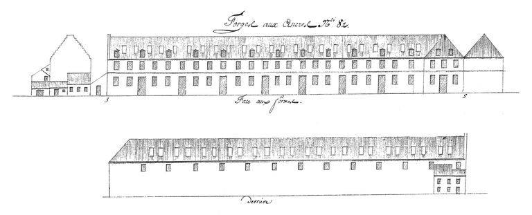 Suite des établissements maritimes, côté de Recouvrance, année 1807. Bâtiments faisant face aux Formes de Recouvrance. Forges aux ancres, n° 82 (face aux Formes, derrière)Immatriculation