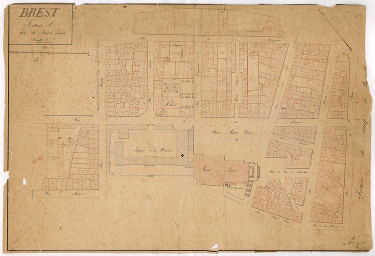 Feuille n° 1 du cadastre ancien de la commune de Brest : section A dite de Saint-Louis, sans date, 1ère moitié 19e siècle, Archives Départementales du FinistèreImmatriculation