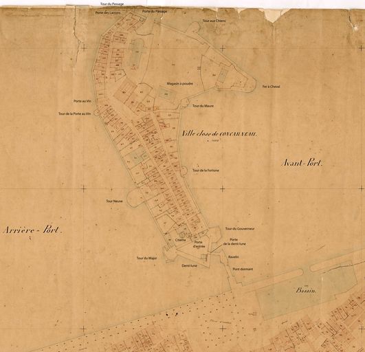 Détail du cadastre ancien de la commune de Concarneau : développement d'une portion de la feuille unique à l'échelle de 1 à 1000, sans date, 1ère moitié 19e siècle, Archives Départementales du FinistèreImmatriculation