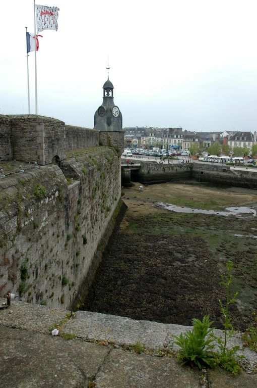 Vue de la ville-close de Concarneau : flanc de la demi-lune et son campanileImmatriculation