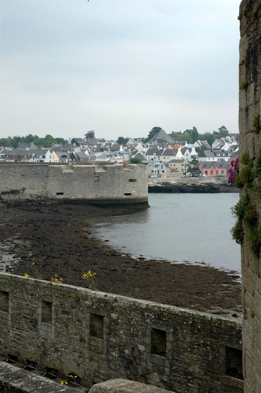 Vue de la ville-close de Concarneau : le Fer à Cheval. Au premier plan : parapet créneléImmatriculation