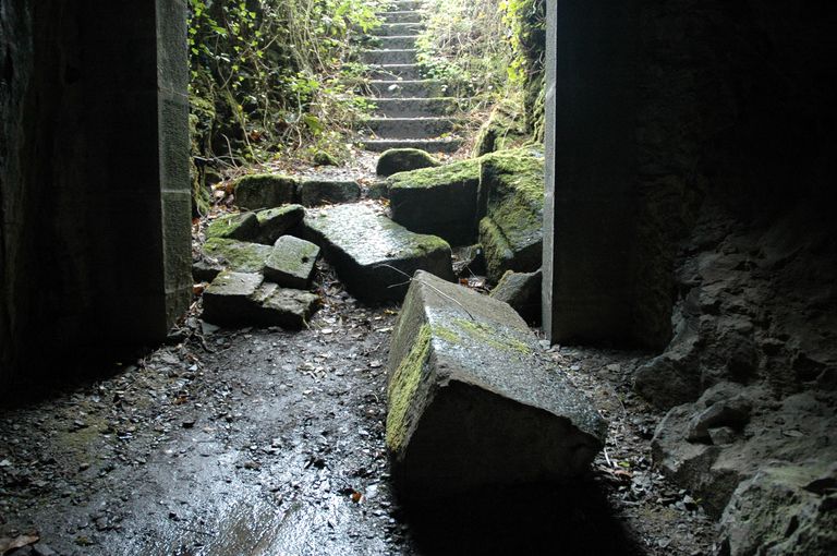 Batterie de rupture casematée (2 canons M de 32 cm modèle 1870-1884 sur affûts M modèle 1888) puis casemates (2 canons antichars de 5cm Kwk) (Cr 42), au ras de l'eau, Pointe des Espagnols (Roscanvel),
