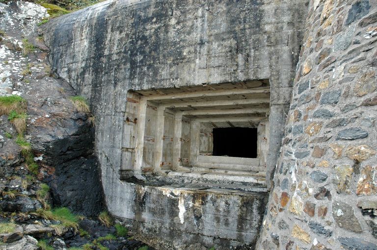 Batterie de rupture casematée (2 canons M de 32 cm modèle 1870-1884 sur affûts M modèle 1888) puis casemates (2 canons antichars de 5cm Kwk) (Cr 42), au ras de l'eau, Pointe des Espagnols (Roscanvel),